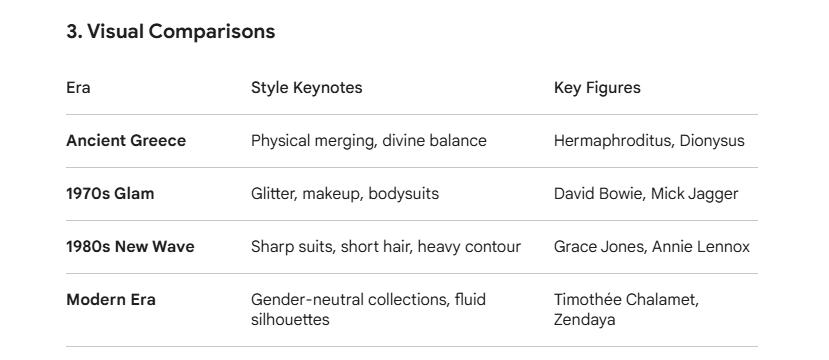 Androgyny has historically been a tool for subversion and self-expression. By blending traits, people can move beyond the "gender binary"—the idea that there are only two ways to look or behave. It allows for a more flexible definition of beauty and personality.How androgyny has influenced specific eras of pop culture and perhaps its roots in Greek mythology.