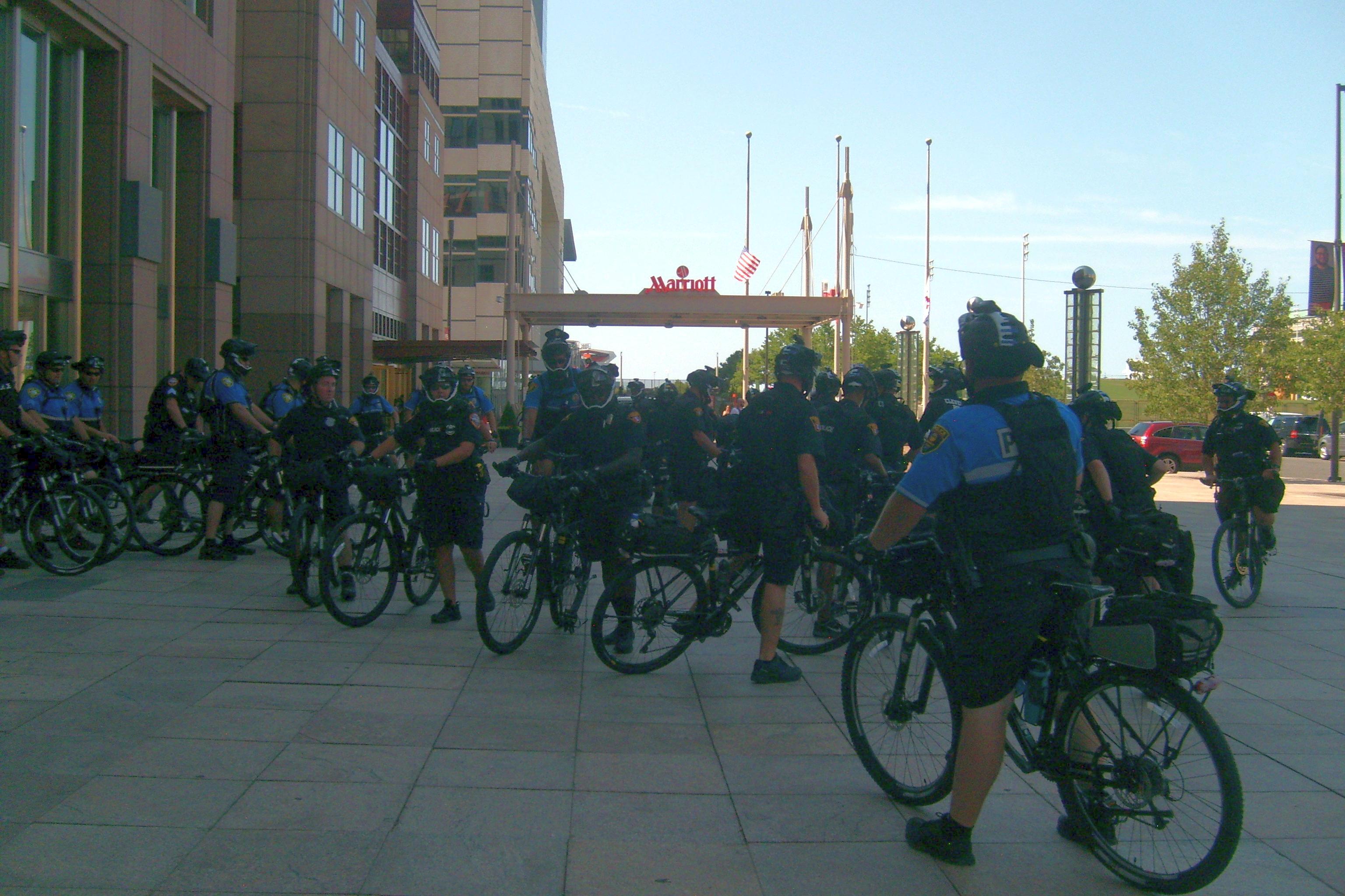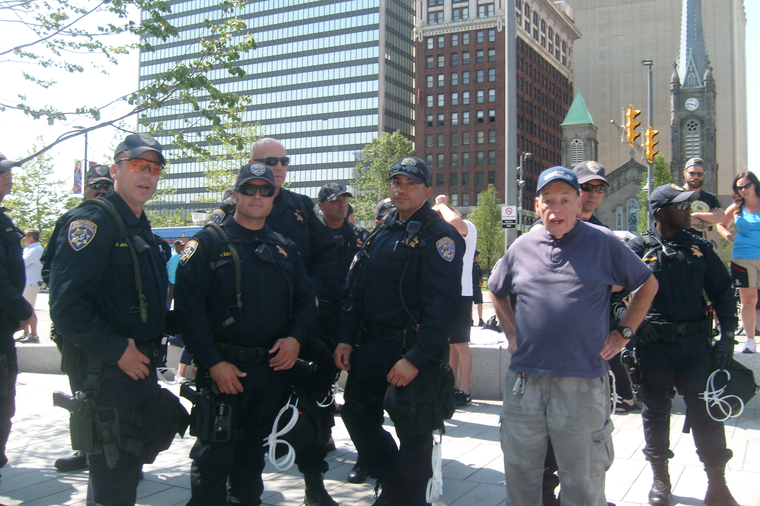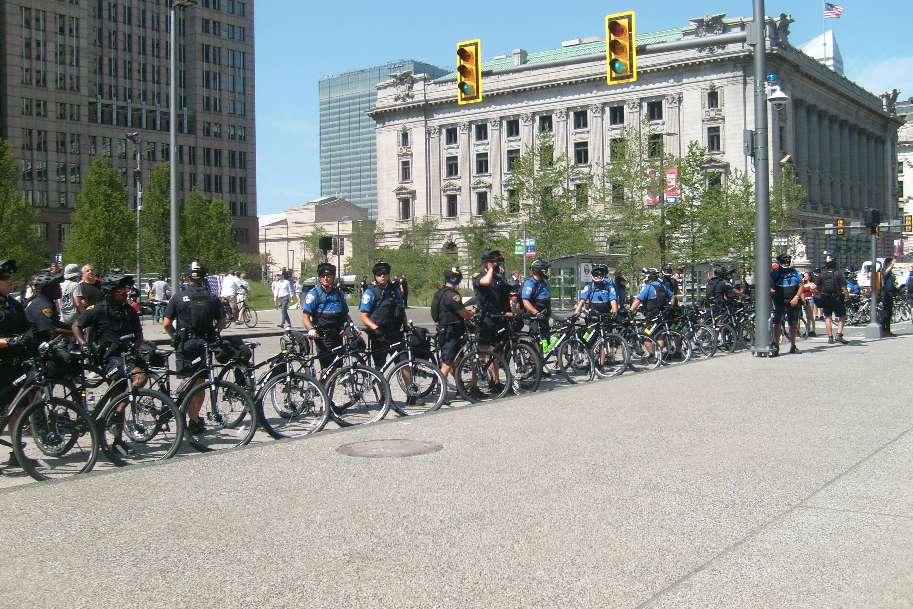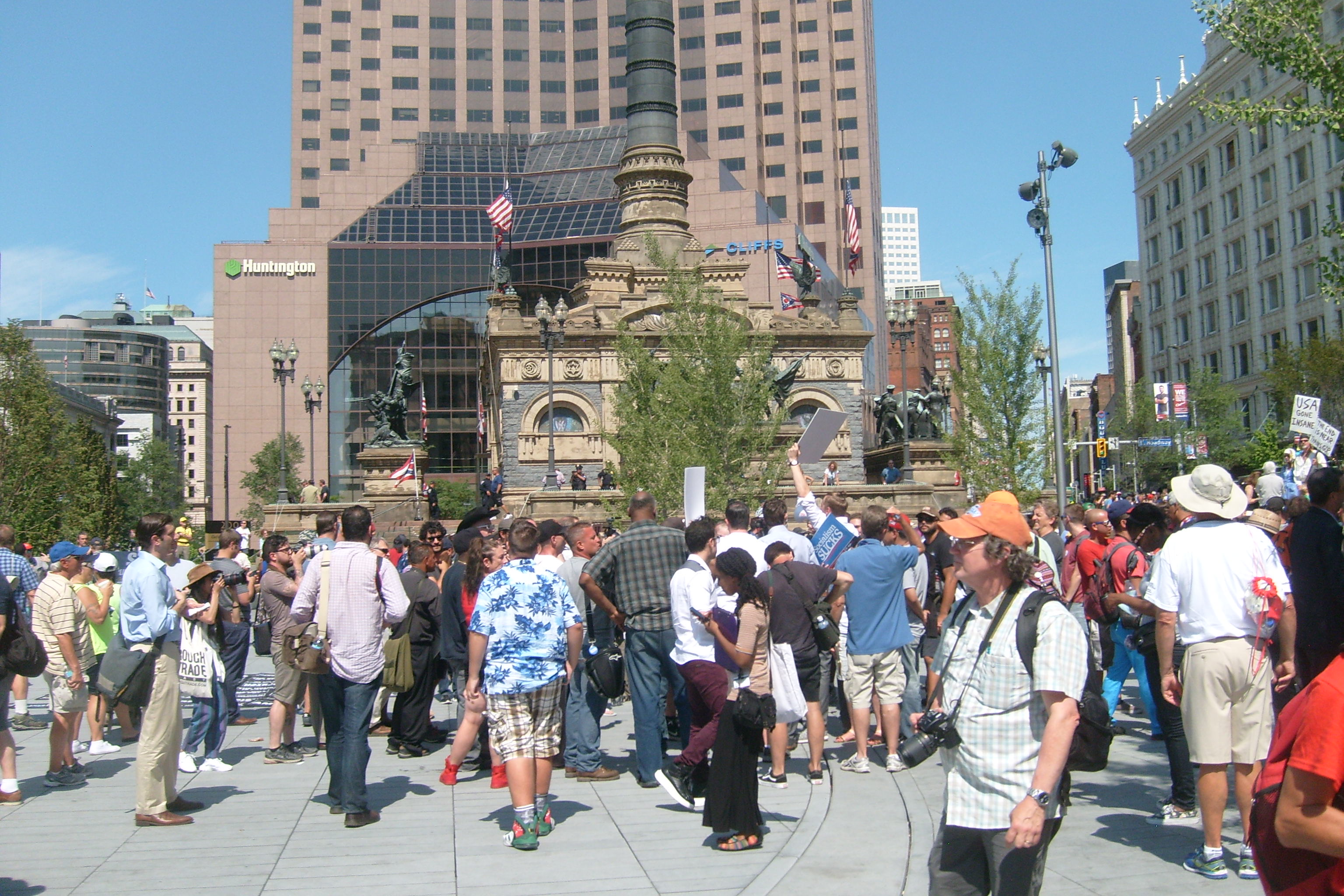 People demonstrated but were well behaved, even the most passionate. I saw NO ONE BEARING ARMS! The police were well ordered and the crowd respected them. I don't know what happened to the black people but there were very few there. KUDOS TO CLEVELAND and to all the visitors and to all the police who came here from all over the country to help out our own Cleveland's finest. |
