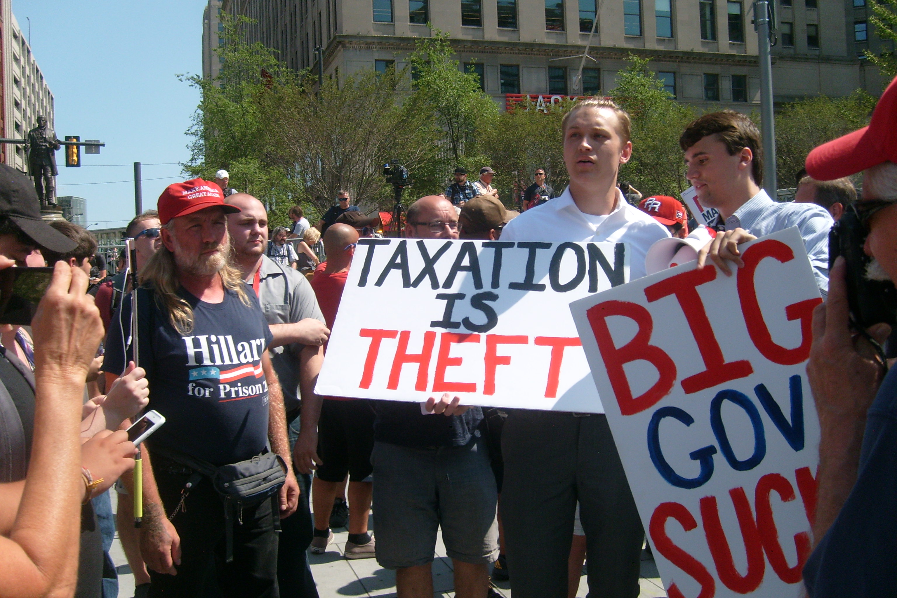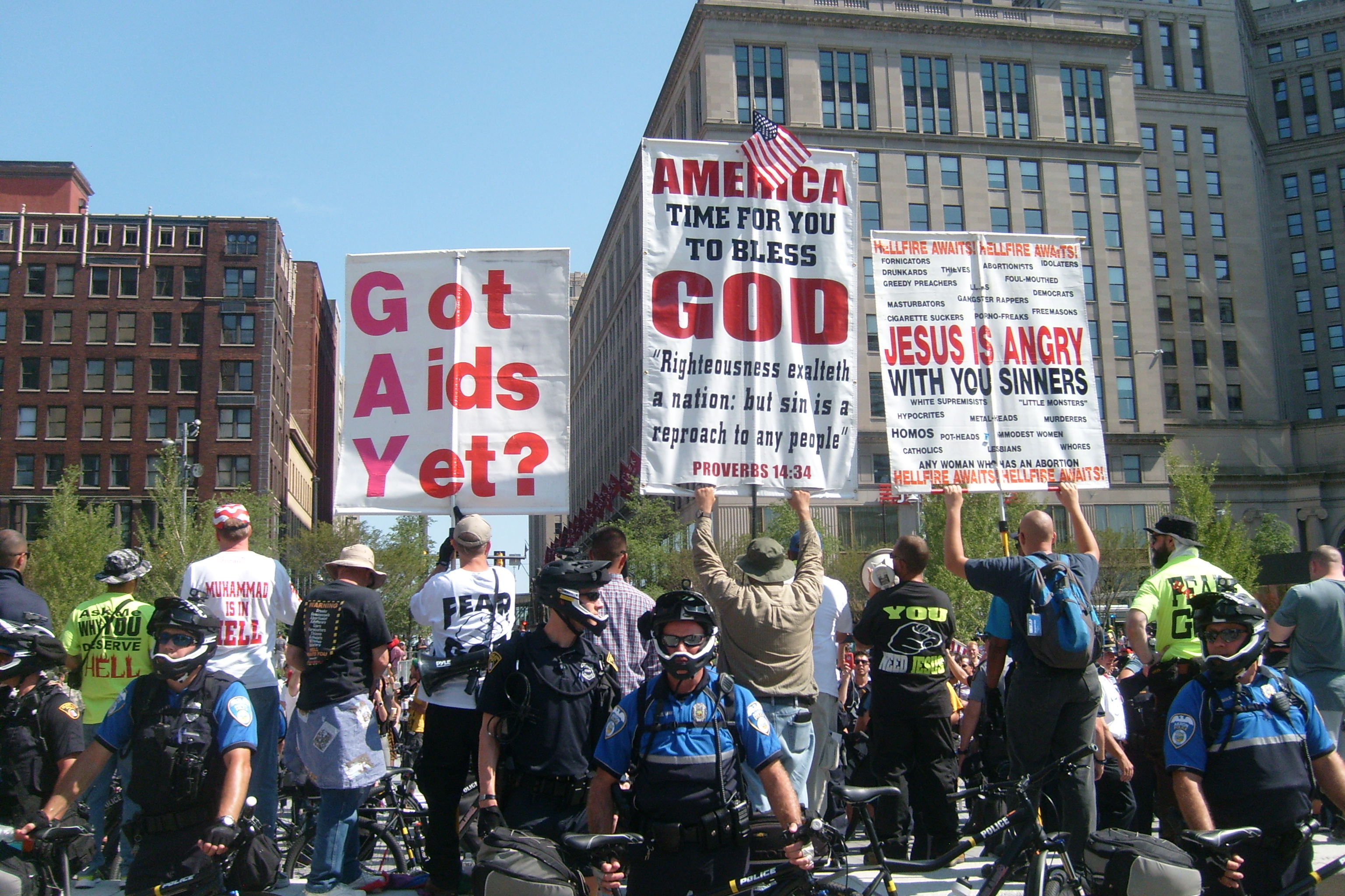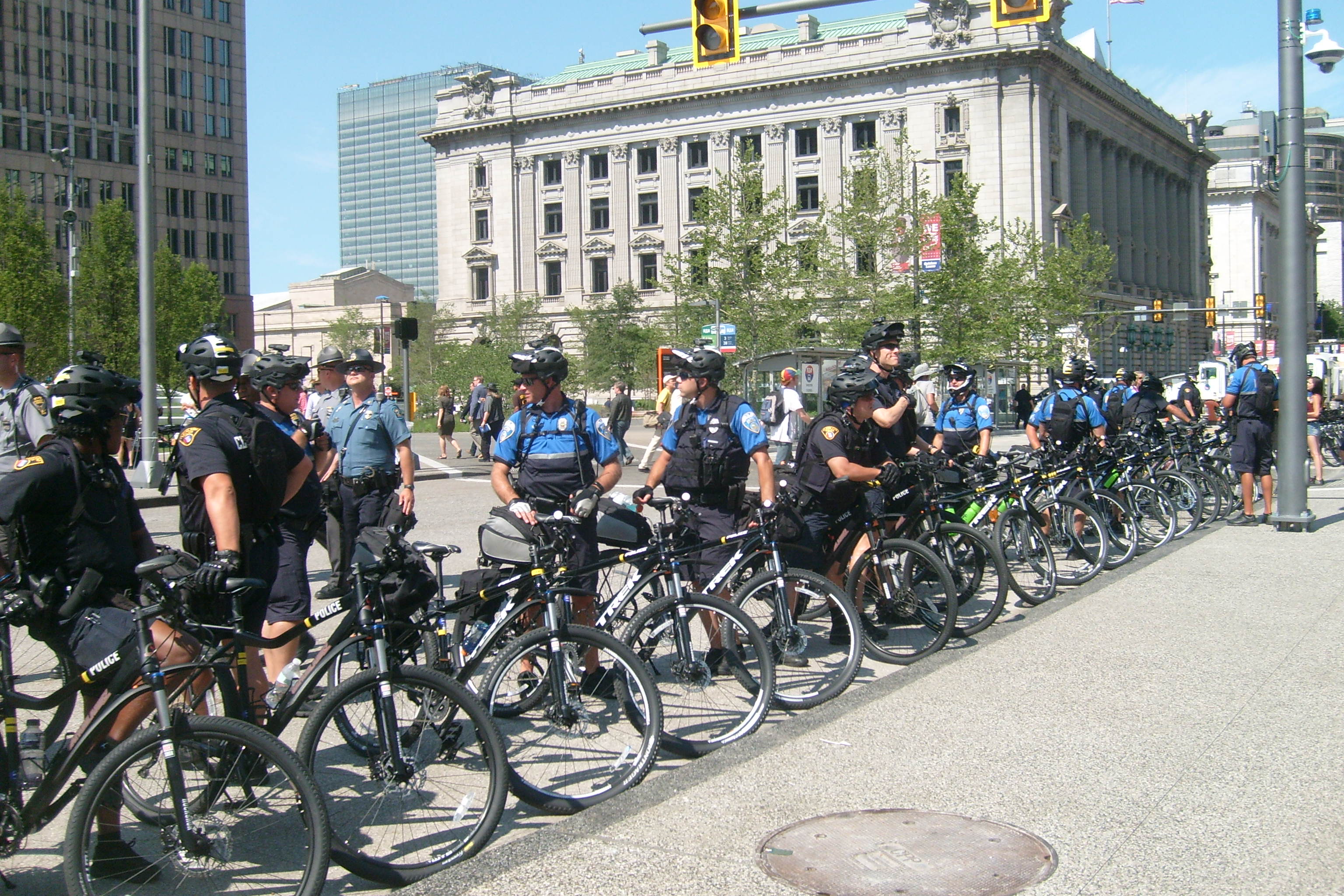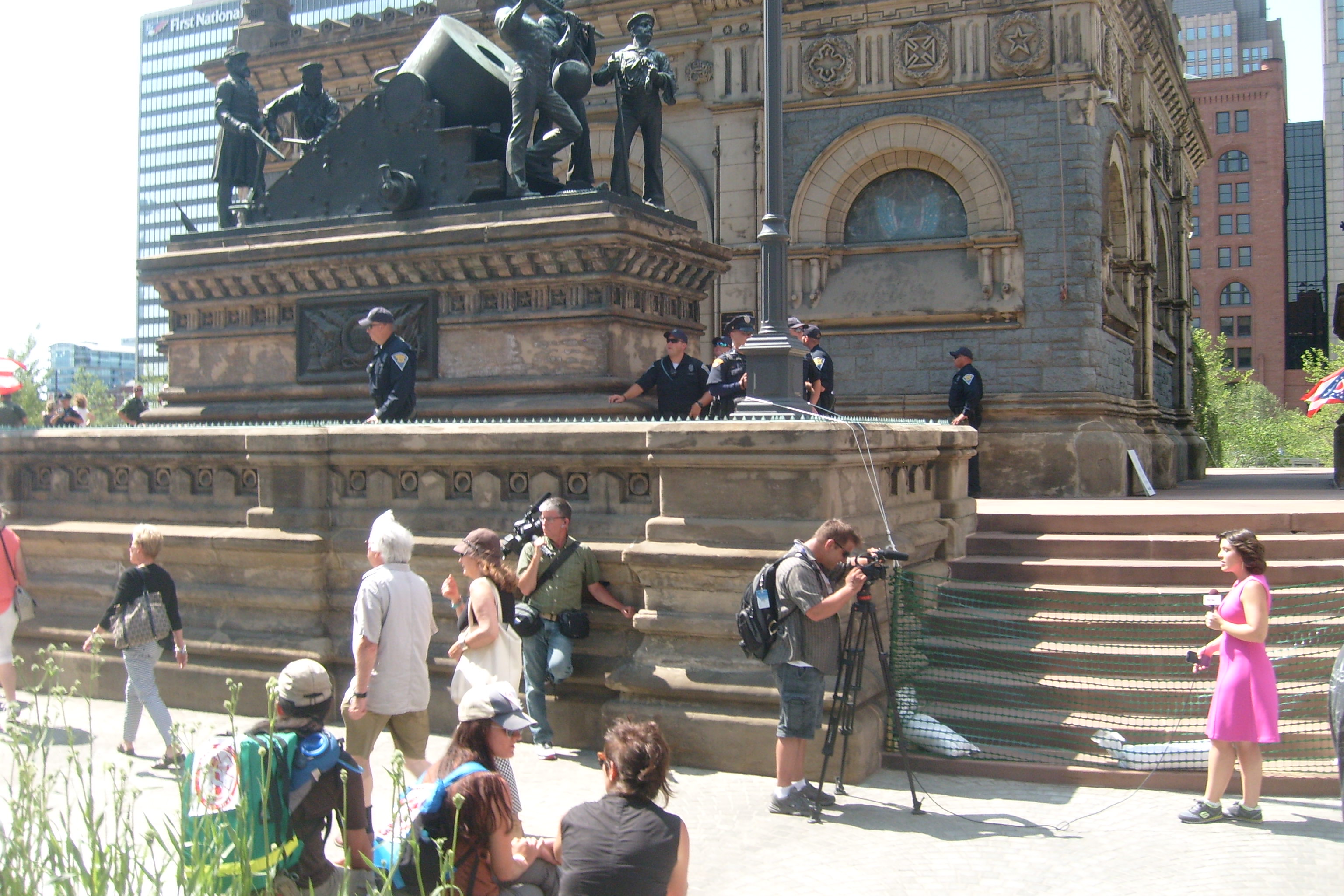 People demonstrated but were well behaved, even the most passionate. I saw NO ONE BEARING ARMS! The police were well ordered and the crowd respected them. I don't know what happened to the black people but there were very few there. KUDOS TO CLEVELAND and to all the visitors and to all the police who came here from all over the country to help out our own Cleveland's finest. |