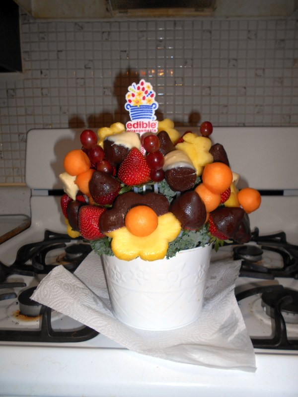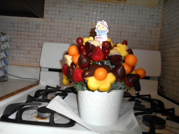 Judy's son sent her a bowl of chocolate covered fruit