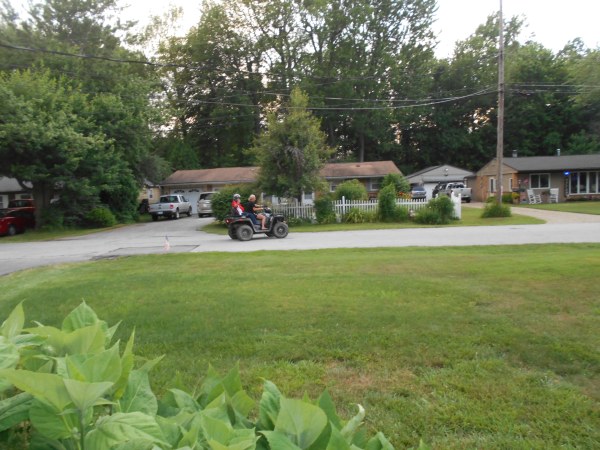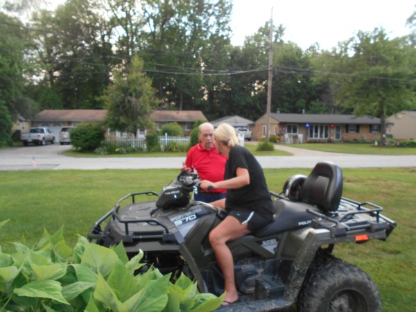 June 27, Saturday night - Faith gives me a ride on her dirt bike