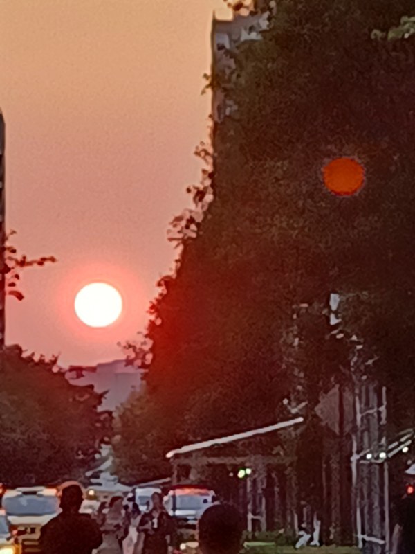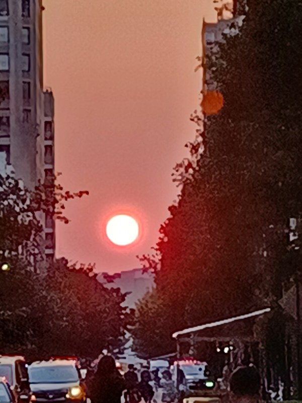 July 5 - Sunset - looking south on lower Broadway, around the corner from Victoria's apartment building.